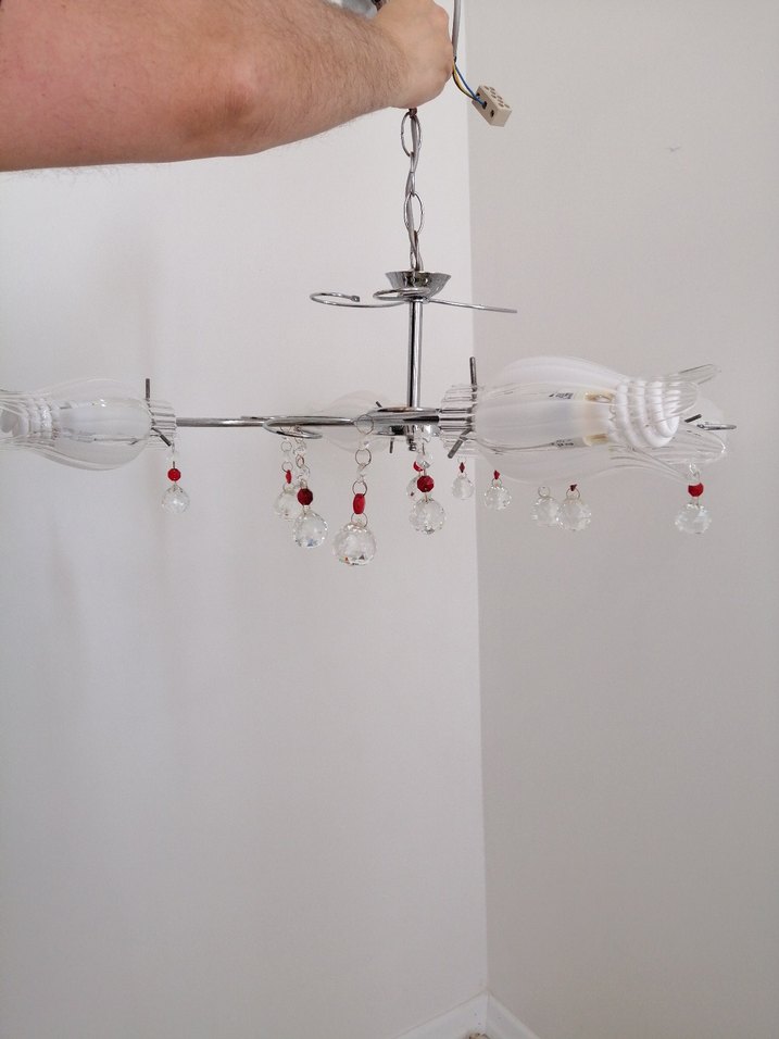 Modern metal çerçeveli, kristal detaylı beyaz avize, sarkan cam süslemelerle şık bir görünüm sunar. Ampulleri dahildir, iki adet ampul çalışır durumda. Diğer ikisinden emin değilim. Denemeden taktım. Resimde detaylar mevcut. 1 adet lale yedek olarak vardır. Paketlenmesini özenle yaptım, gönderime hazırdır.