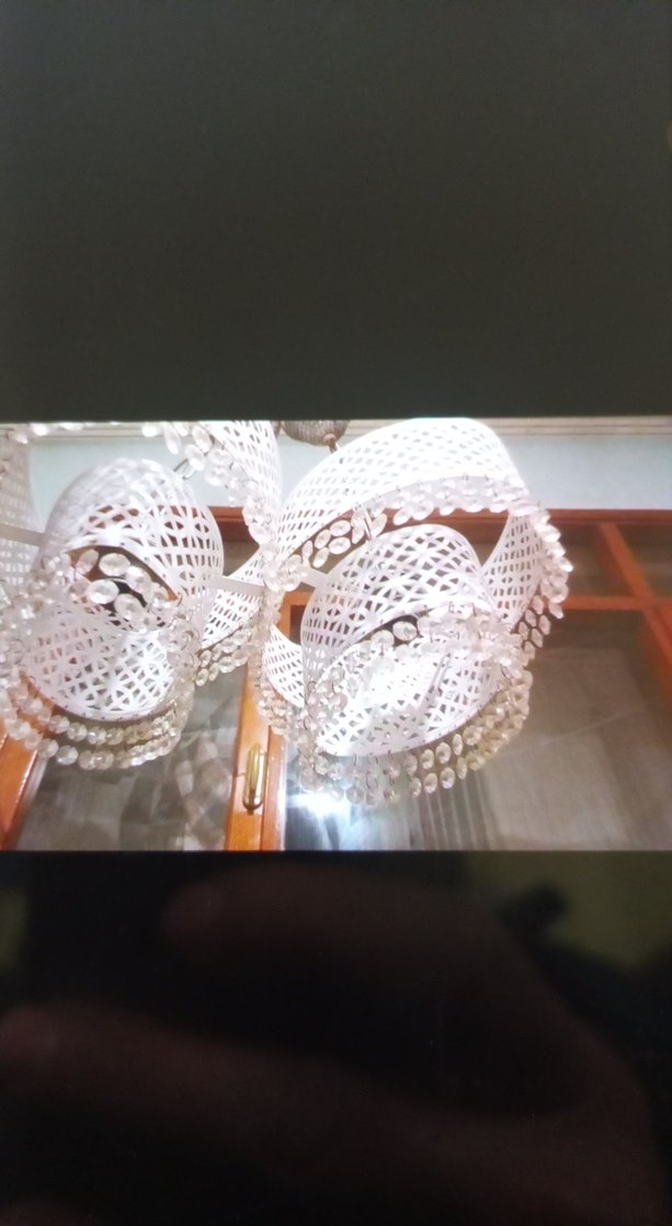 Beyaz renkli, kristal detaylı ve dekoratif tasarıma sahip avize, mekanlara şıklık katar.