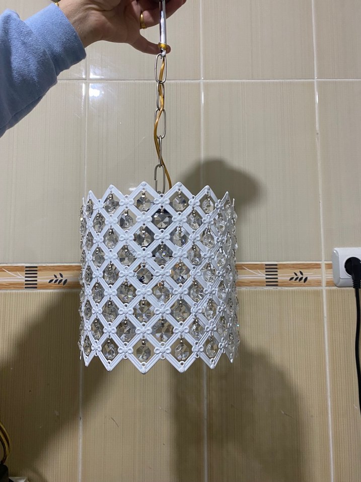 Beyaz renkli, kristal detaylı kafes desenli sarkıt avize. Altın zincirle asılır, mekana şık ve aydınlık bir dokunuş katar. İki adet halinde gelecek
