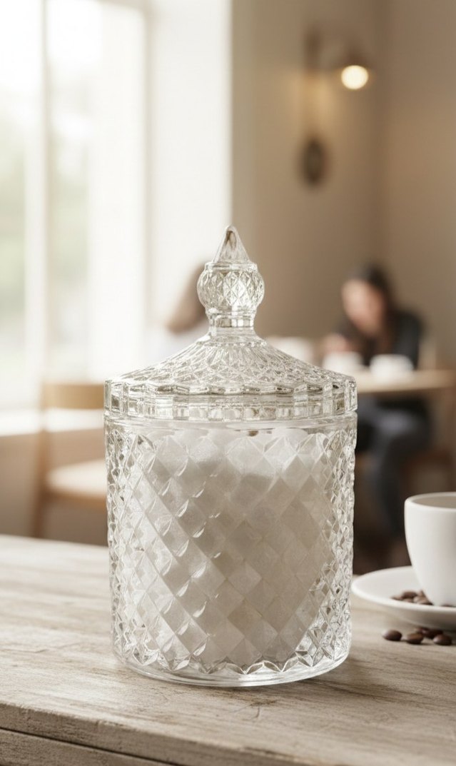 kristal görünümlü dokusu ve sivri saplı kapağı ile dekoratif bir şekerlik