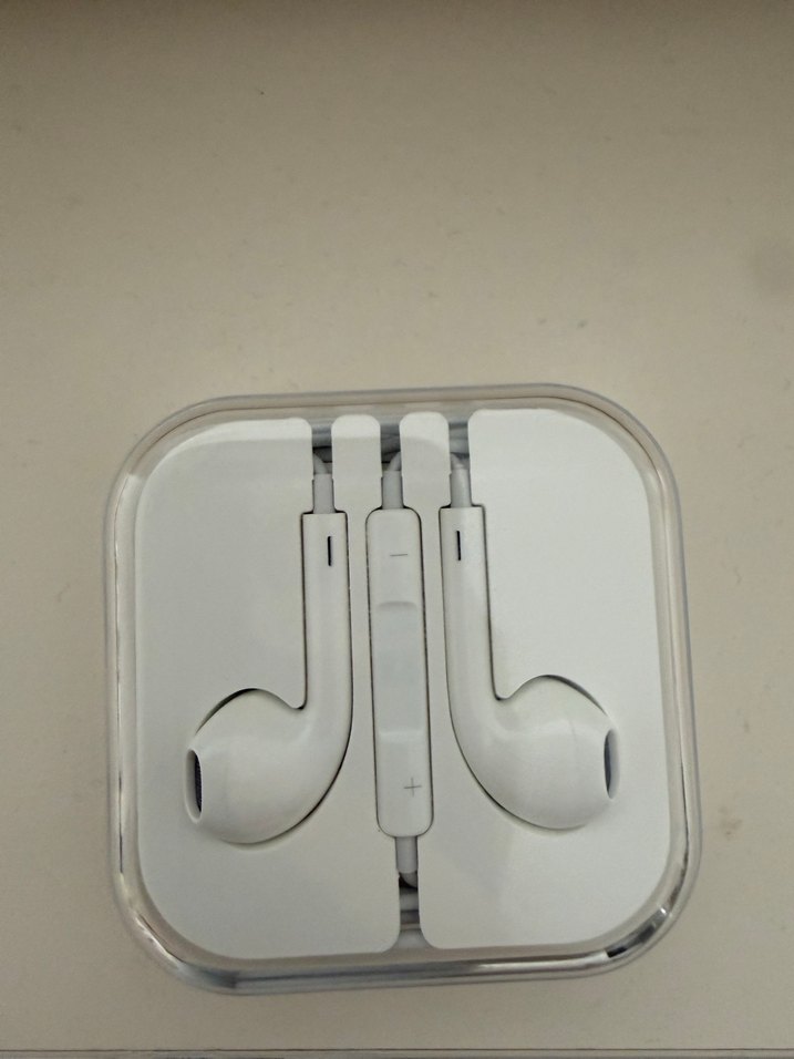 Ses kontrolü ve oynatma düğmeleri bulunan beyaz kulak içi kulaklıklar. Şeffaf kompakt kutu içinde. Hiç kullanılmadı sıfır