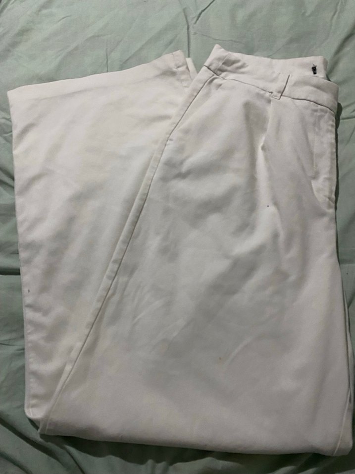 Beyaz Kumaş Pantolon bir yerinde nokta kadarcık lekesi var başka sorun yok