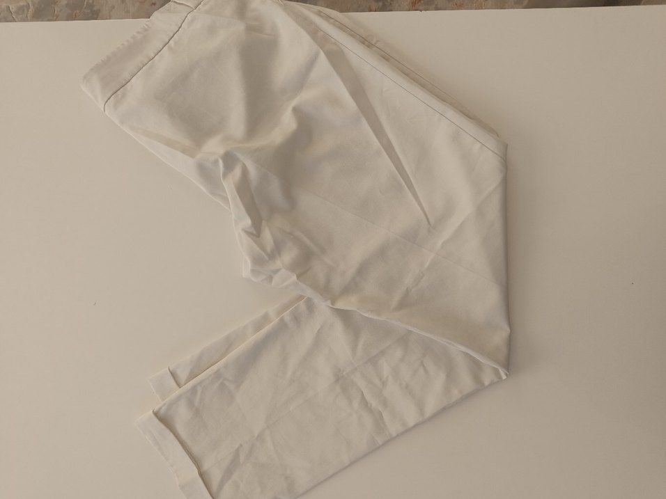 44 beden Armine beyaz kumaş pantolon.2 veya 3 kez giyildi.Temiz ürün sadece kemer kısmında ufak lekeler var kemer takınca gözükmüyor zaten bedeni olmuyor olsaydı satmazdim.