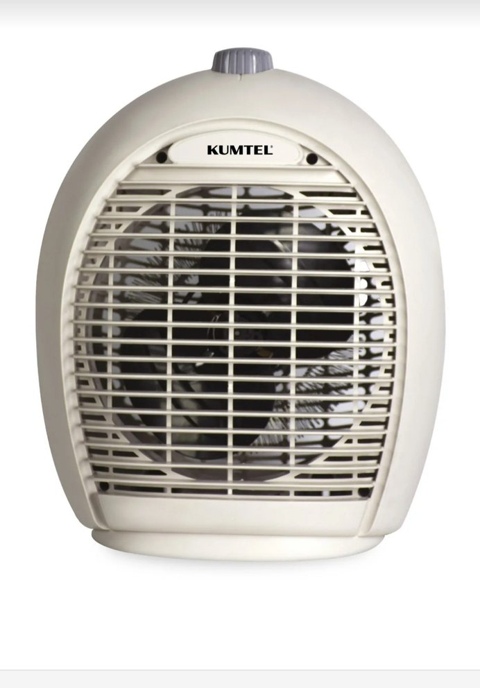 Beyaz Kumtel ısıtıcı, ön ızgara ve üstte ayarlanabilir kontrol ile kompakt tasarıma sahiptir.