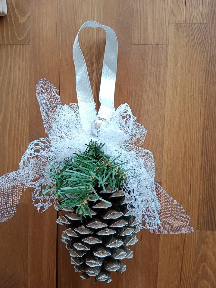 Beyaz Kurdeleli Kozalak Süs yılbaşı süsleri