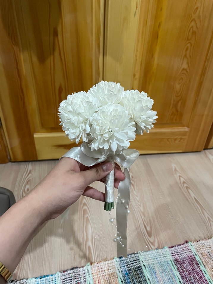 Beyaz Kurdeleli Minimalist Gelin Çiçeği
