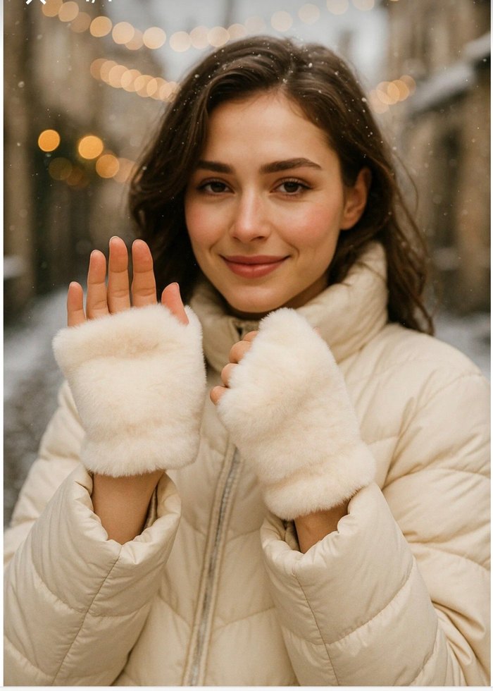Beyaz kürk detaylı bu kadın eldivenleri, rahat ve şık bir dokunuş sunar. Günlük kullanıma uygun, yumuşak ve sıcak tutar. ❄️