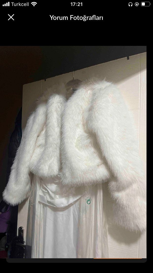 Beyaz kürk detaylı, uzun kollu, normal boy midi kadın mont. Fitted kesim ve yaka detayı ile sokak modasına uygun, günlük kullanıma uygun.trenyoldan aldım beyaz kürk her açıdan resim atılır. FİYAT SORUN