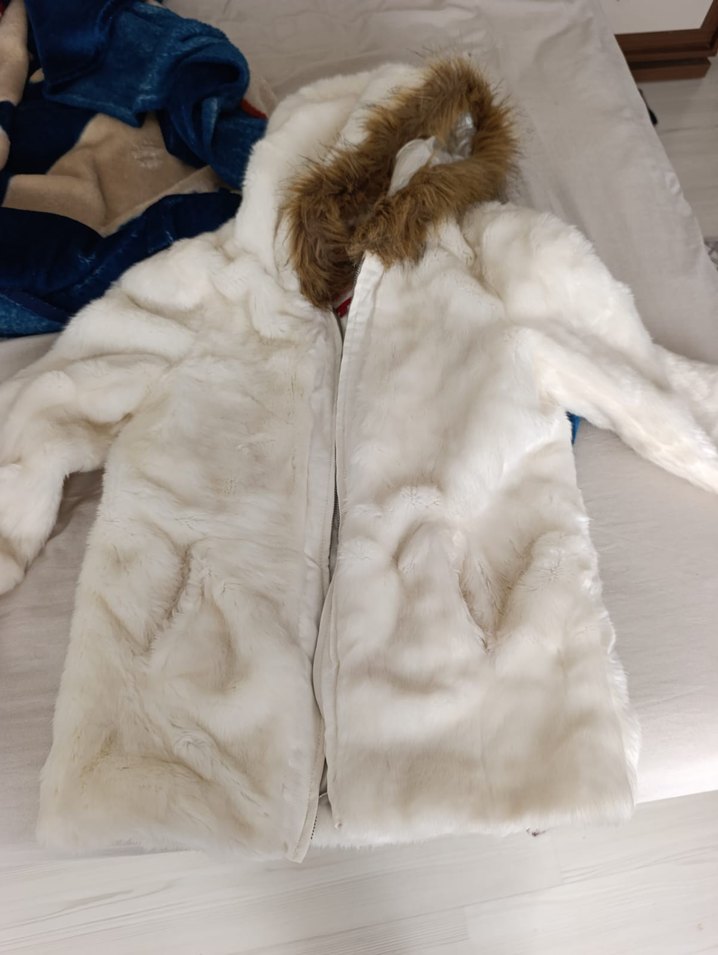 Kürklü detaylara sahip, beyaz ve hafif uzun kollu kaban. Yumuşak ve sıcak kumaşıyla dış mekanlarda rahatlık sağlar. ❄️