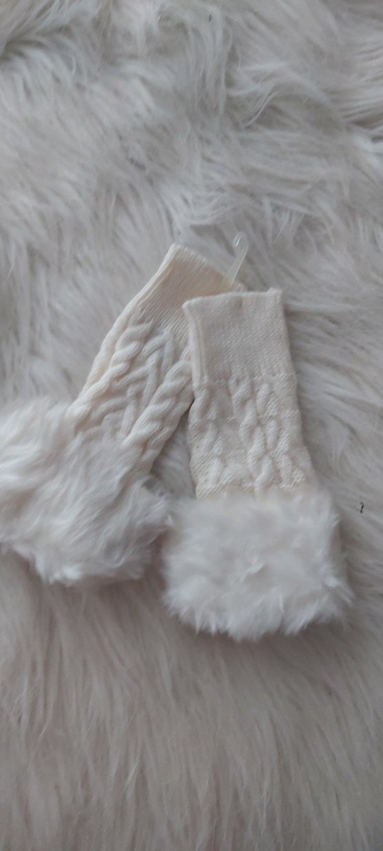 Yumuşak yün kumaştan, bohem tarzda ve kürk detaylı beyaz kadın eldiveni. Rahat ve hafif bir görünüm sunar. ❄️