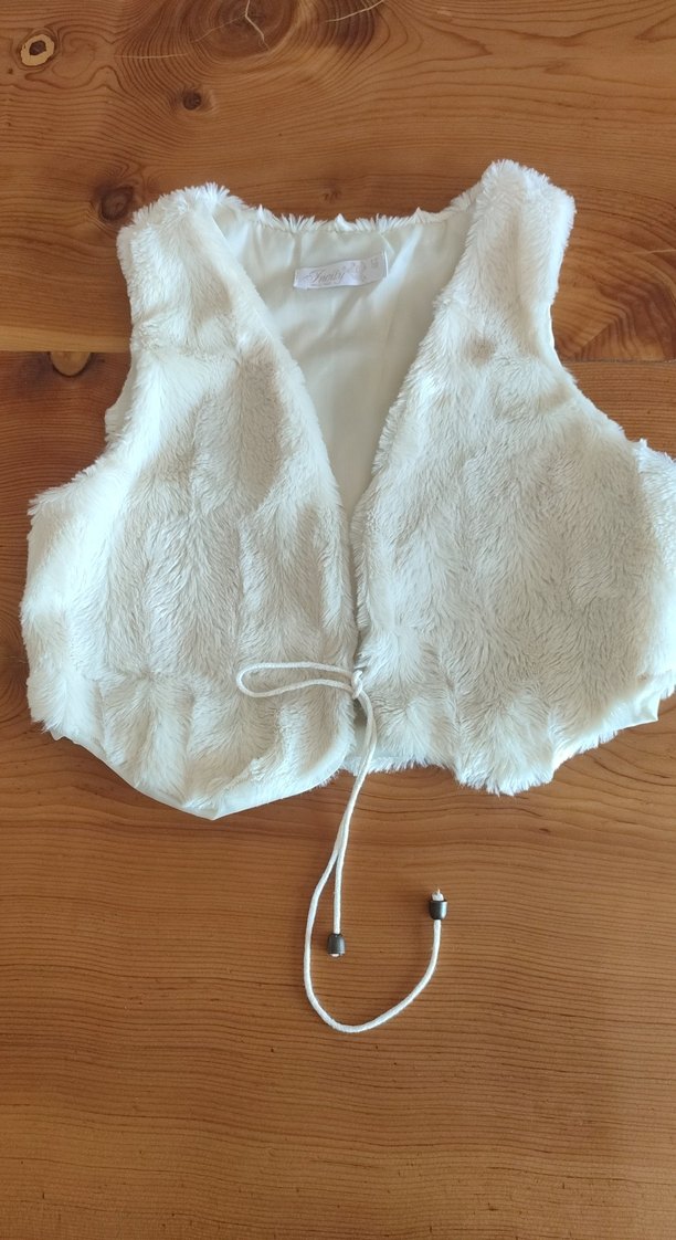 Kürklü beyaz, kolsuz ve ince kesimli bu yelek, bohem tarzında halter yaka ve midi boydadır. Belinde ayarlanabilir ip bulunur. Düğünler için uygundur.