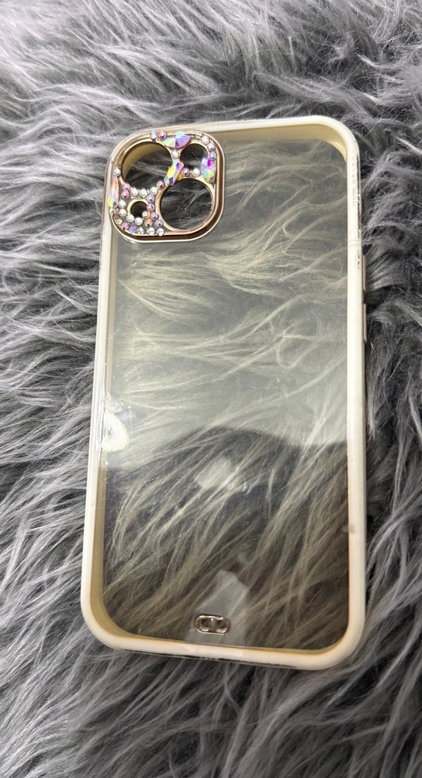 Bu telefon kılıfı, beyaz çerçeve, kürk detayları ve bohem tarzıyla dikkat çekiyor. Kamera kısmı ışıltılı taşlarla süslenmiştir.