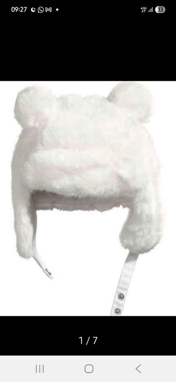 8-12 yaş arası. Sıfır etiketlidir. H&M marka. Yumuşak kurkten, üstte kulaklı, dikili kıvrık siperli, kulak kapaklı şapka. Çene altında çıtçıtlı ayarlanabilir şeritli. #Jarse #astarlı #ruskalpağı #ruskalpak #peluşşapka #tavşan #angora #hoodie #beyazbere #beyazşapka #kutupayısı #ayıcık #bear #whitehat #kışlıkşapka #winter #fur #yumuşacık #yumoş #hmşapka #kalpak #kurkşapka #tavşankurku #angorayunlu #angorayunu Beyaz, kürklü detaylı, kulaklıklı çocuk peluş şapka, yumuşak ve sıcak kumaşlı, sokak modasına uygun.
