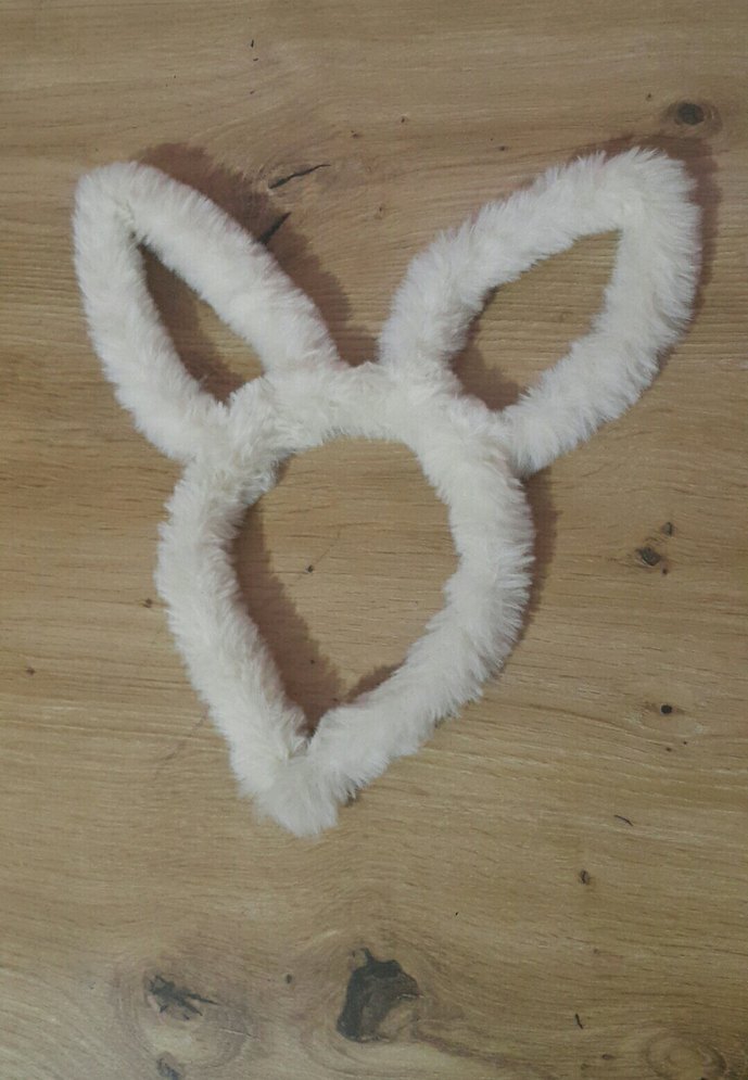Beyaz kürk detaylı, çocuklar için yumuşak ve oyuncu tavşan kulaklı taç.