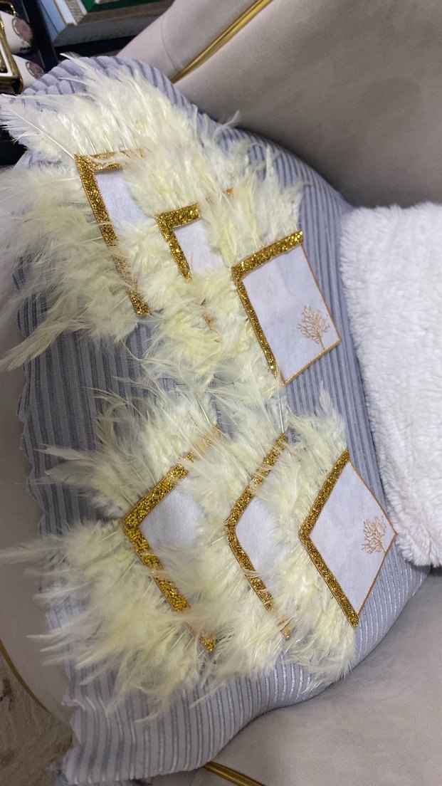 Beyaz Kürklü İşlemeli peçetelik