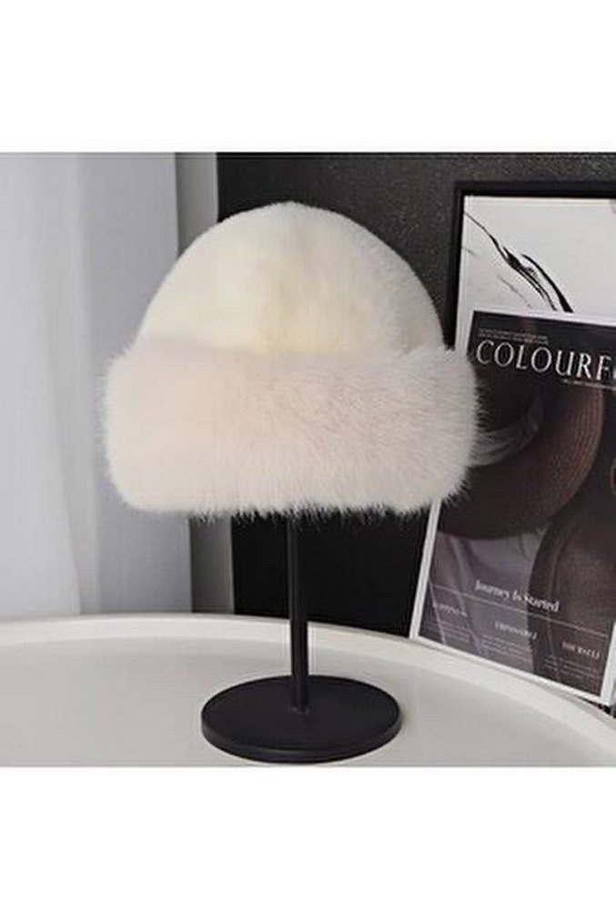 Kadın bere, yumuşak ve sıcak kumaş ile kürk detaylıdır. Açık beyaz renkte, rahat ve karşı kültür tarzındadır. ❄️