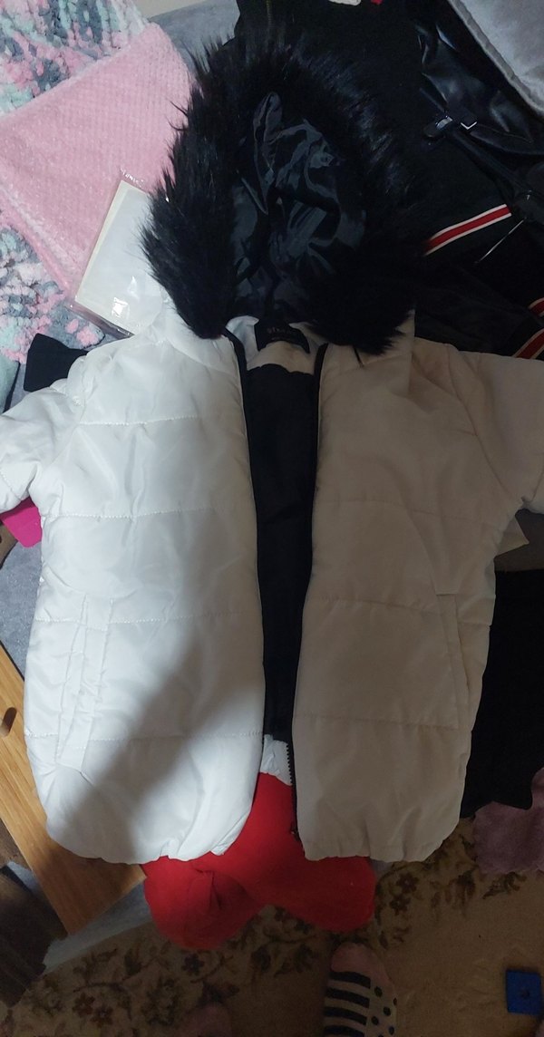 Bu beyaz, kürklü kapüşonlu kadın kışlık mont, dar kesim ve uzun kolludur. Yumuşak, sıcak tutan kumaştan yapılmıştır, günlük kullanıma uygundur.