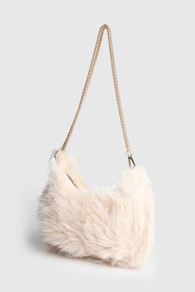 Beyaz Kürklü Kadın Omuz Çantası