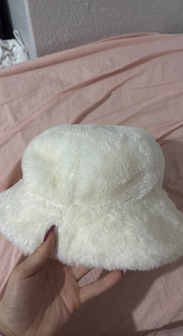 Yumuşak ve sıcak beyaz kürklü kova şapka, rahat ve bohem tarzda. Pastel ve sade görünüm için uygun. ❄️ aldığım ama hiç kullanmadığım bir ürün