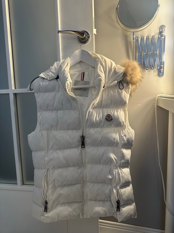 Beyaz, kürklü detaylı, yüksek yakalı, kolsuz şişme yelek. İnce kesimi ve midi boyuyla sokak stiline uygun, yumuşak ve sıcak kumaştan üretilmiştir. ❄️