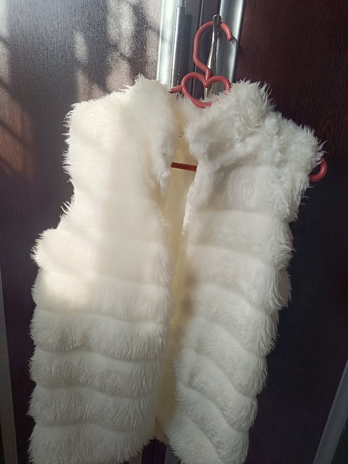 Beyaz, kürklü detaylı, kolsuz ve straplez yaka, günlük kullanıma uygun şık ve rahat kesim yelek. ❄️
