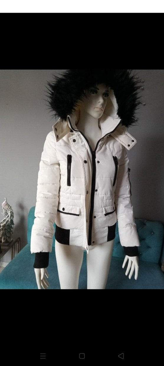 Kısa kesim, beyaz renkli, kürklü kapüşonlu ve çıtçıtlı detaylı, uzun kollu, sokak stiline uygun kadın kışlık mont. Rahat sentetik kumaştan üretilmiştir. ❄️