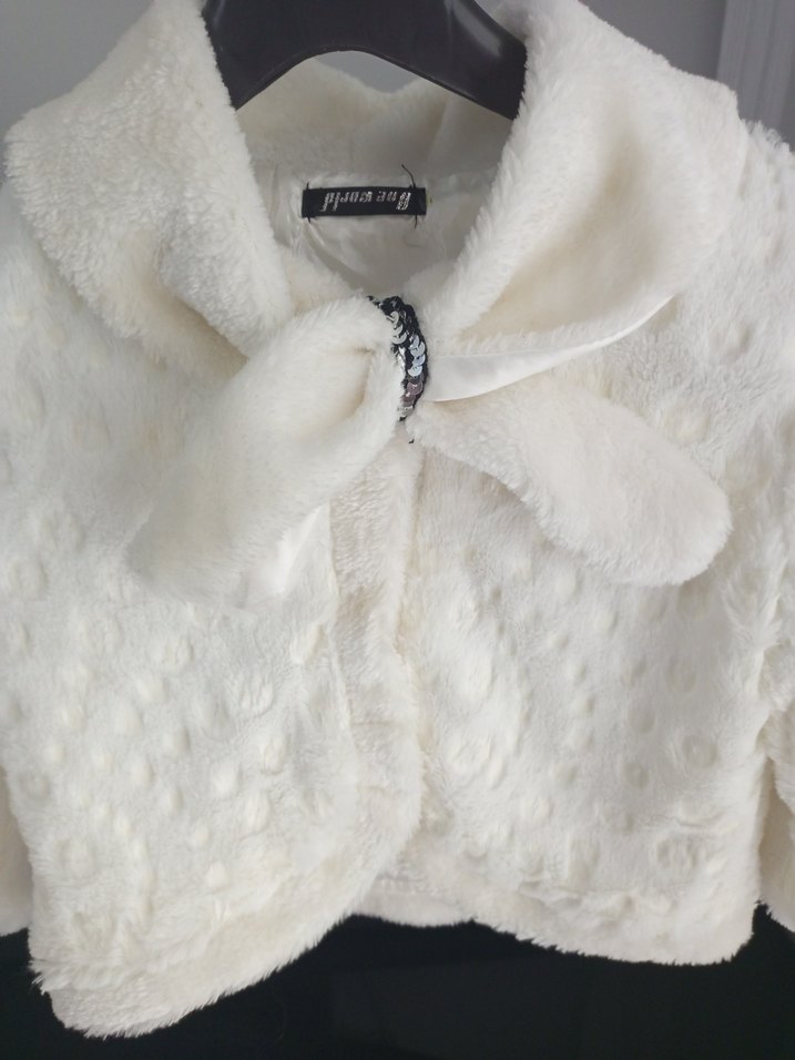 beyaz, kürklü kısa kadın mont,