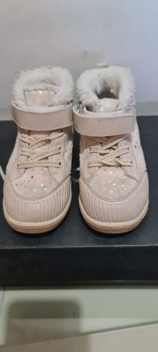 Beyaz, kürklü ve lastik tabanlı kız çocuk botu. Pastel tonlarda, sokak stiline uygun rahat bir tasarım. ⭐
