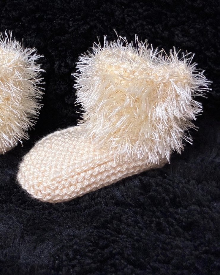 Beyaz renkte, kürklü detaylı kız çocuk triko botlarıdır. Bohem tarzda, modaya uygun ve yenilikçi görünüme sahiptir. ❄️