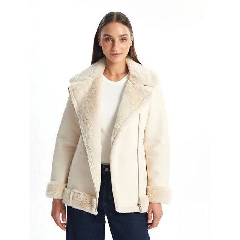 Beyaz renkte, kürklü yaka, manşet ve etek ucu detaylı midi uzunlukta kadın ceket. Yumuşak ve sıcak kumaştan, normal kesim ve uzun kolludur. Rahat ve şık sokak stili için uygundur. ❄️