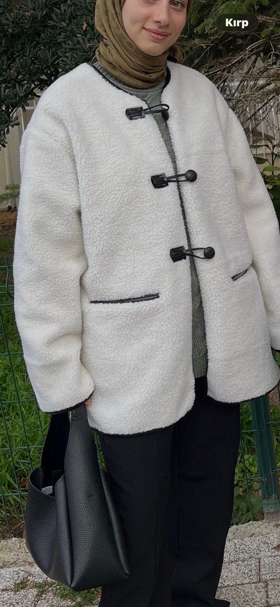 Beyaz Kürklü Midi Kadın Ceket