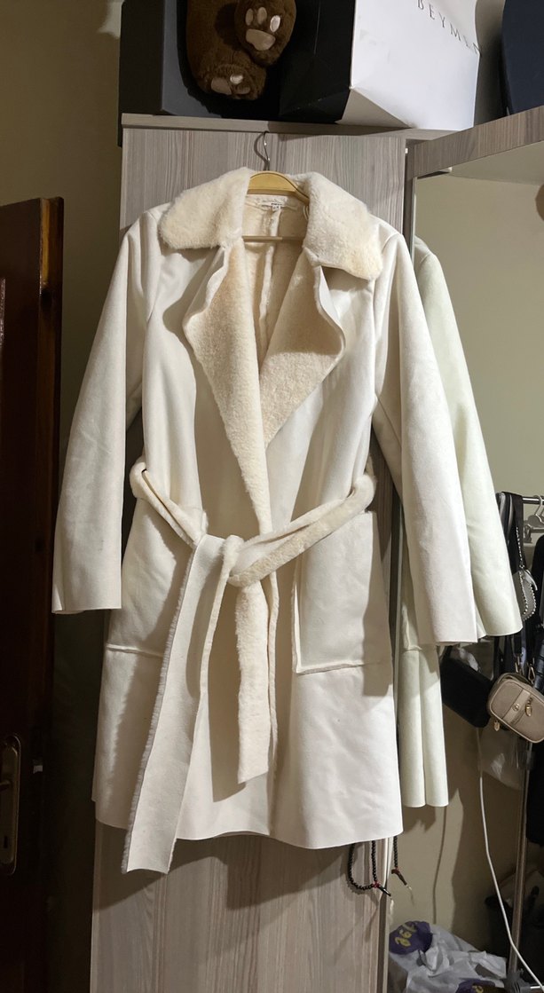 Kadın koton marka içi kürklü kaban sayılı giyildi