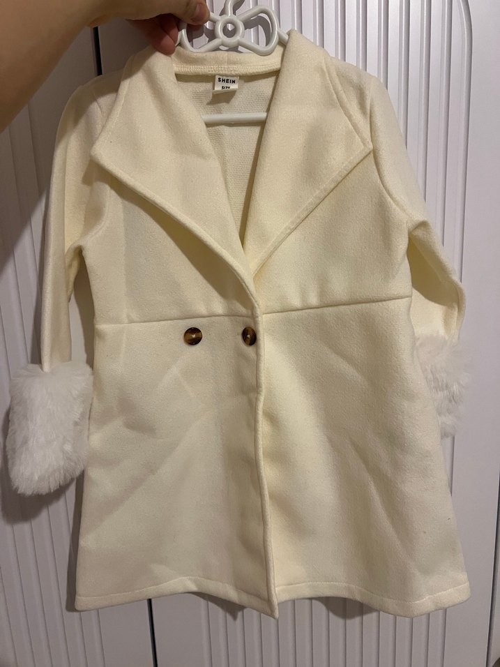 Beyaz renkli, uzun kollu ve kürk detaylı manşetlere sahip midi uzunlukta kız çocuk kabanıdır. Yumuşak ve sıcak dokulu kumaştan üretilmiş, düz kesim ve desen içermeyen günlük kullanıma uygundur. 2-3 yaş içindir. Yurtdışından hediye geldi. Hiç kullanılmadı .