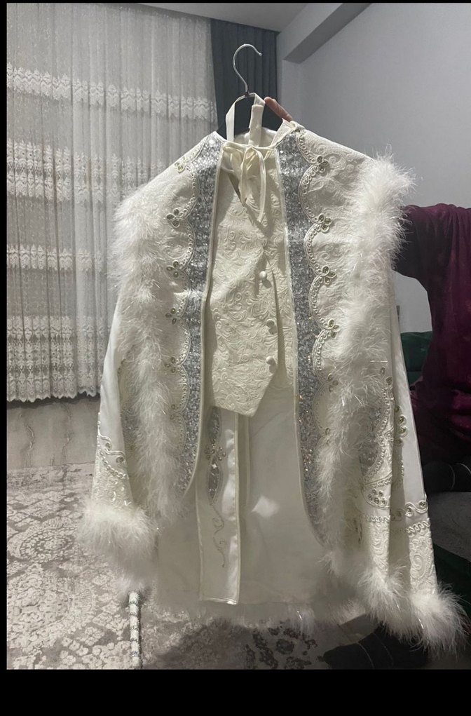 Beyaz Kürklü Nakışlı Çocuk sünnet Takımı