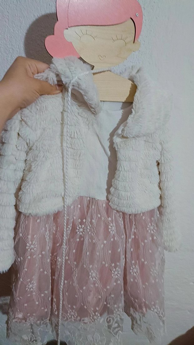 beyaz, kürklü pembe abiye elbise 3.5 4 yaş için uygundur