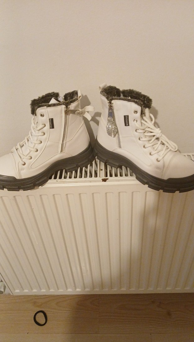 Beyaz renkte, kürk detaylı ve ince topuklu sokak tarzı botlar. Kauçuk malzemeden yapılmış, günlük kullanıma uygun rock punk havası taşır.