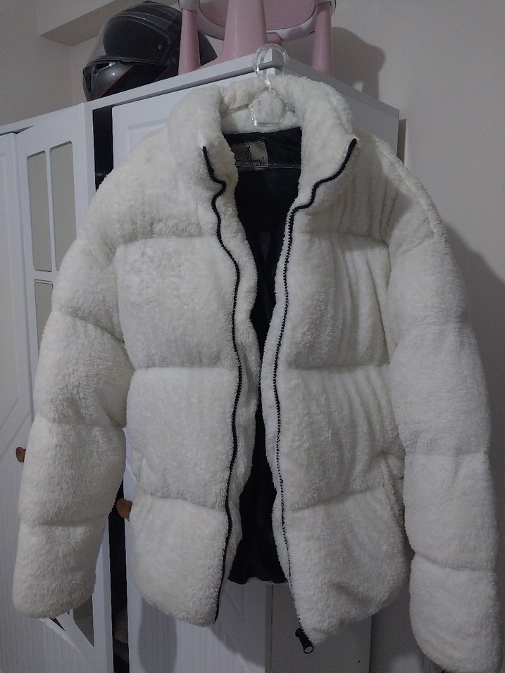 Beyaz Kürklü unisex Kışlık Mont