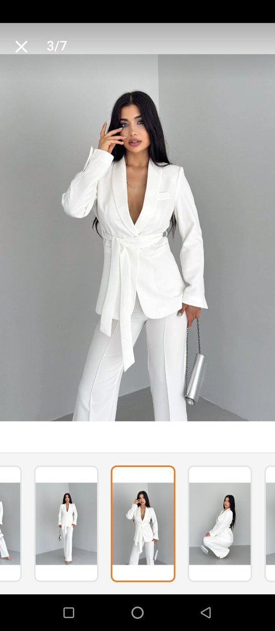 Beyaz renk, kuşaklı bel ve mini boy ile kadın takımı. İpek gibi kumaşı, kısa ve strappy kollu tasarımıyla ofis için uygun, şık ve rahat bir görünüm sunar.