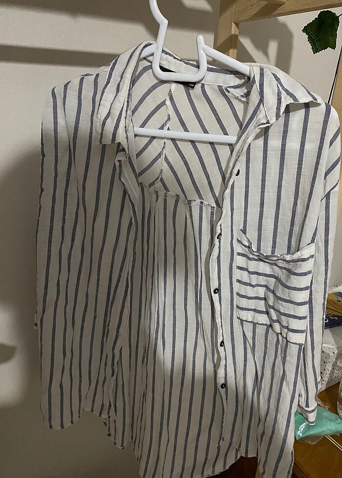 Beyaz lacivert çizgili gömlek, 38 beden