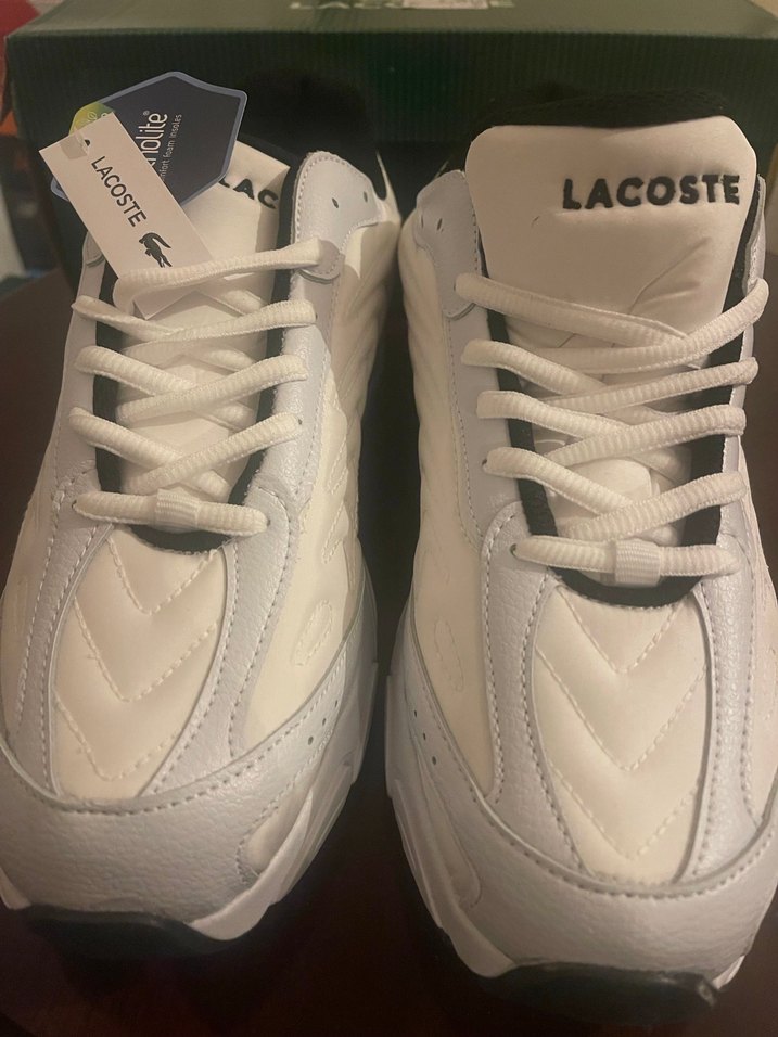Lacoste marka beyaz erkek spor ayakkabısı, bağcıklı ve kauçuk tabanlı. Spor ve sokak stili için uygun, desen yok, hafif renkli. %100 ORJİNAL GARANTİSİ ( İADE VAR )