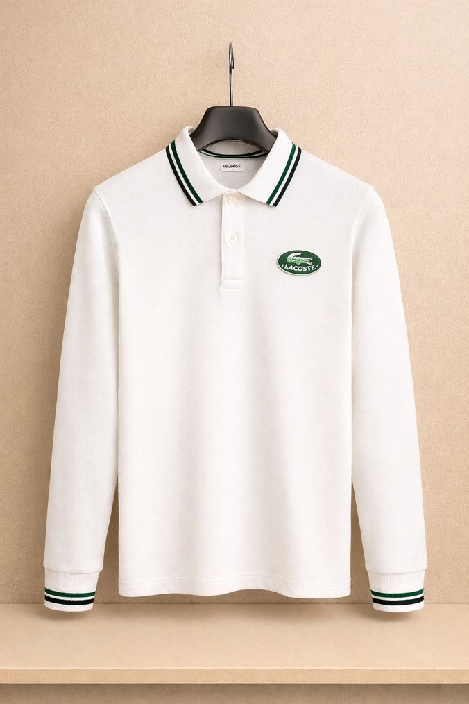 Beyaz Lacoste Uzun Kollu Polo Tişört