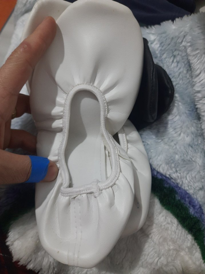 Lastikli kenarları ve yumusak deri beyaz bale ayakkabısı. Düz ve desen içermeyen, sokak modasına uygun tarzda. gösteri için alındı. 38.39.40.41numaraya olabilir ev içinde uygun. 39.40 ayakkabı giyiyorum denedim rahat oldu içi yumuşak ve sıcak