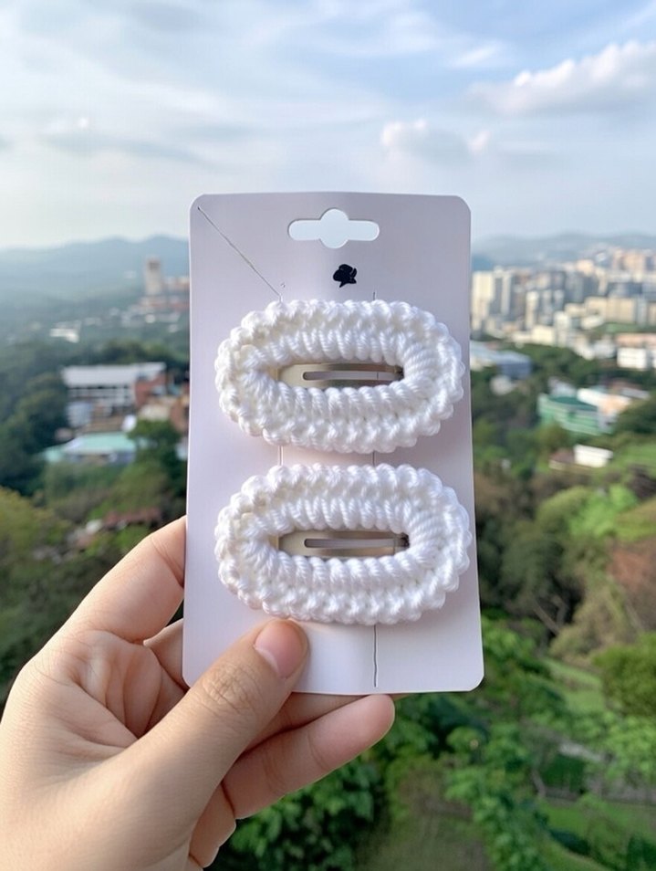 İki adet beyaz lastikli çocuk saç tokası, sade sokak stili ve hafif batik desenlidir. İstenilen renk yapılır