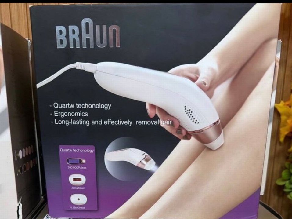 Uzun ömürlü ve etkili tüy alma sağlayan beyaz lazer epilasyon cihazı. Farklı bölgeler için iki değiştirilebilir başlık içerir.✨