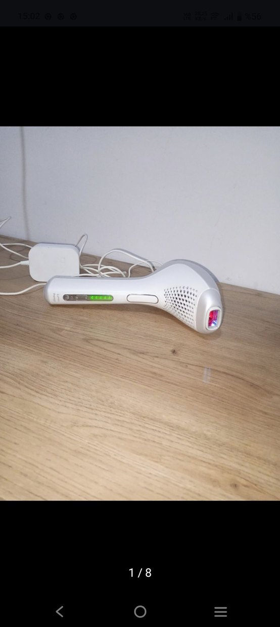 Ergonomik tasarımlı beyaz lazer epilasyon cihazı, kullanımı kolay LED göstergelere sahiptir. Şarj için adaptör dahildir.