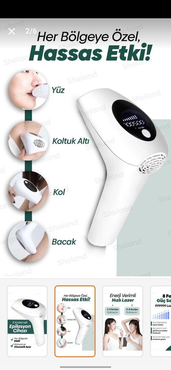 Enerji verimli hızlı lazer teknolojisine sahip beyaz lazer epilasyon cihazı. Yüz, koltuk altı, kol ve bacak için hassas etki modları bulunur. ⚡
