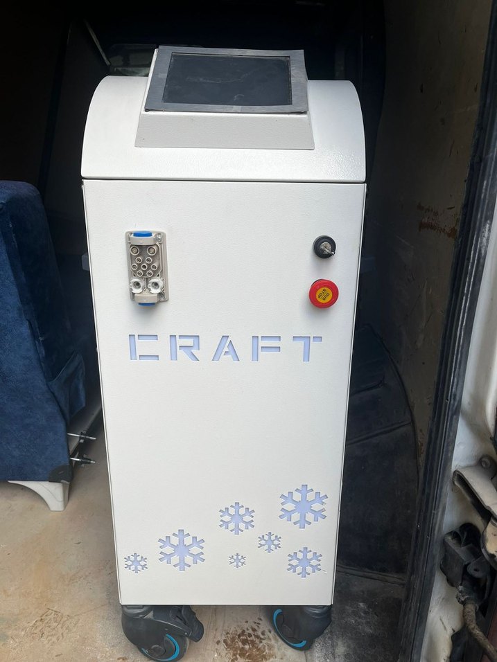 Beyaz renkli ERAFT lazer epilasyon cihazı, dokunmatik ekran ve taşınabilir tekerleklerle donatılmıştır. ❄️