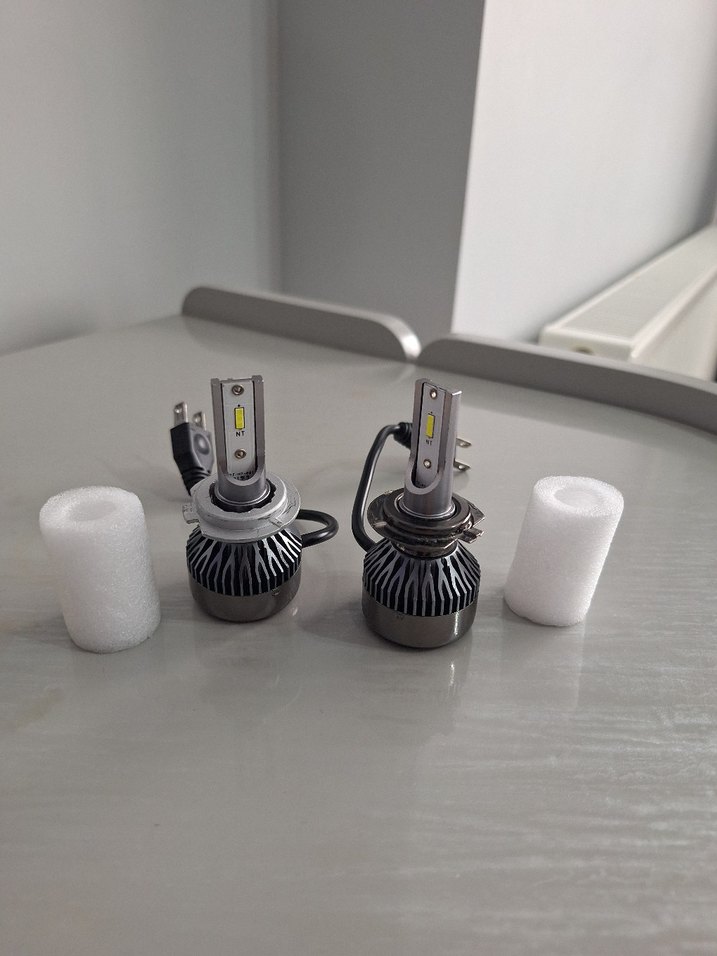 Soğutucu kanatlı ve bağlantılı beyaz LED far ampulü seti, araç aydınlatması için. Köpük koruyucular dahildir. h7