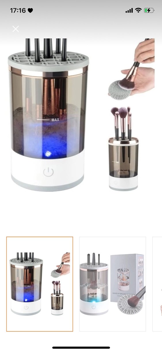 Beyaz renkli, LED ışıklı makyaj fırçası temizleyici. Fırçaları etkili şekilde temizleyip kurutur. Kompakt ve kullanımı kolay.