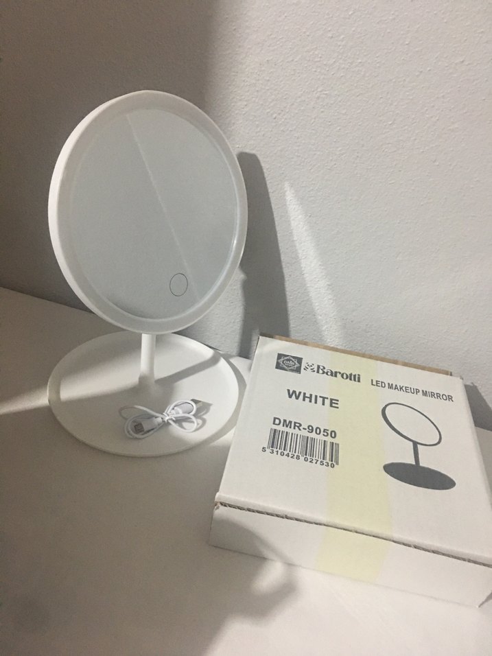 Beyaz renkli, dokunmatik düğmeli sarı LED makyaj aynası USB kablo ile çalışır, makyaj için uygundur. 3 farklı renk ledi vardır